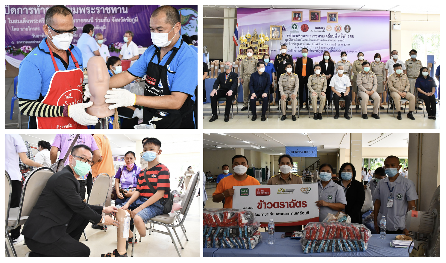 ประเทศไทยมีผู้พิการขาขาดจำนวนมากที่ต้องการขาเทียมเพื่อให้มีคุณภาพชีวิตที่ดีและสามารถประกอบอาชีพและหาเลี้ยงครอบครัวด้วยความภาคภูมิใจ ไม่เป็นภาระต่อสังคม แต่ภาระค่าใช้จ่ายในการจัดทำขาเทียมมีราคาที่สูง มูลนิธิขาเทียม ในสมเด็จพระศรีนครินทราบรมราชชนนี สามารถทำขาเทียมในราคาที่ถูกเพราะสามารถหาวัสดุทดแทนการนำเข้าจัดทำขาเทียมโดยไม่คิดค่าใช้จ่าย ไม่เลือกเชื้อชาติ ศาสนา (ไม่ต้องมีบัตร) จึงเห็นความสำคัญในการช่วยเหลือและสนับสนุนการออกหน่วยขาเทียมพระราชทานมาอย่างต่อเนื่องมากกว่า 15 ปี มอบข้าวตราฉัตรเพื่อสนับสนุนคณะแพทย์และช่างกายอุปกรณ์ตลอดระยะเวลาการทำขาเทียม และตลอดทั้งปีงบประมาณที่จะมีการออกหน่วย 5 ครั้งต่อปี