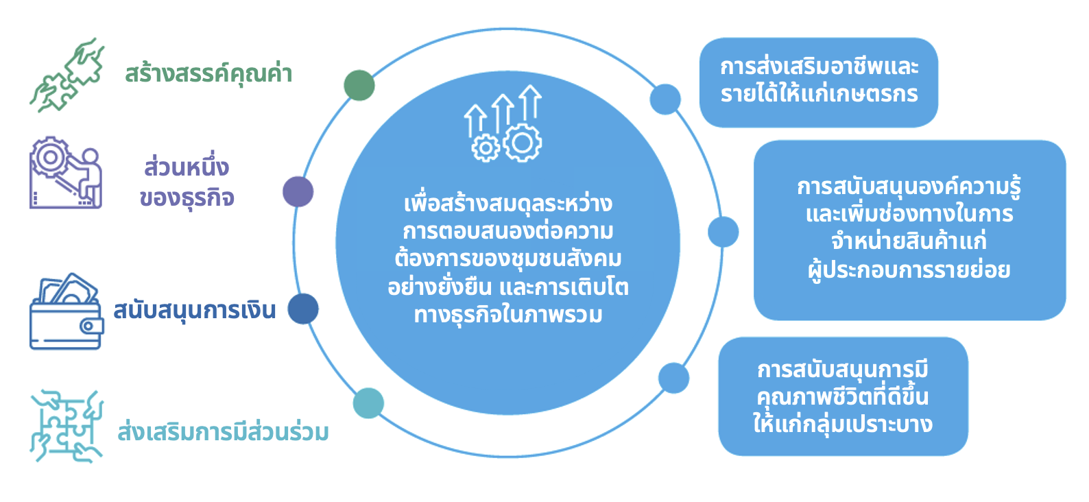 ความท้าทายที่ส่งผลไปทั่วโลกในปัจจุบันคือจำนวนประชากรโลก ที่เพิ่มสูงขึ้นอย่างต่อเนื่อง การส่งเสริมและพัฒนาคุณภาพชีวิต ให้ประชากรกลุ่มเปราะบางได้รับความเท่าเทียมในสังคมจึงเป็นสิ่งที่ควรให้ความสำคัญเป็นอย่างยิ่ง เพื่อลดความเหลื่อมล้ำทางสังคมที่เกิดขึ้น ภายใต้แนวคิดที่ว่า “การสร้างรากฐานทางธุรกิจ ให้แข็งแรง ต้องดำเนินควบคู่ไปพร้อมกับการสร้างรากฐาน คุณภาพชีวิตของคนในสังคม” จึงทำให้ธุรกิจฯ มีแนวคิดและตระหนักถึงการสนับสนุนแก่คนในสังคมอย่างต่อเนื่อง
