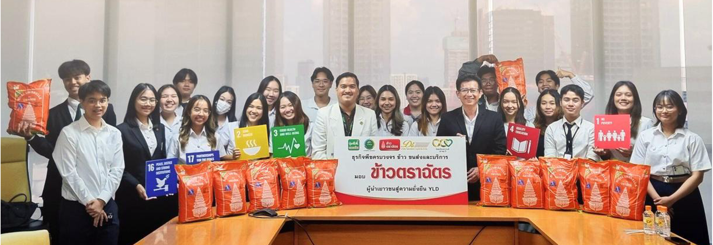 มอบข้าวตราฉัตร ภายใต้โครงการ “ผู้นำเยาชนสู่ความยั่งยืน” (Young Leadership Development) เพื่อสนับสนุนให้นิสิต/นักศึกษาออกค่ายอาสา ส่งเสริมการช่วยเหลือสังคม ลดความเหลื่อมล้ำทางการศึกษา ให้ทุกพื้นที่สามารถเข้าถึงการศึกษาที่มีคุณภาพ