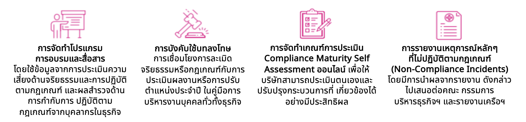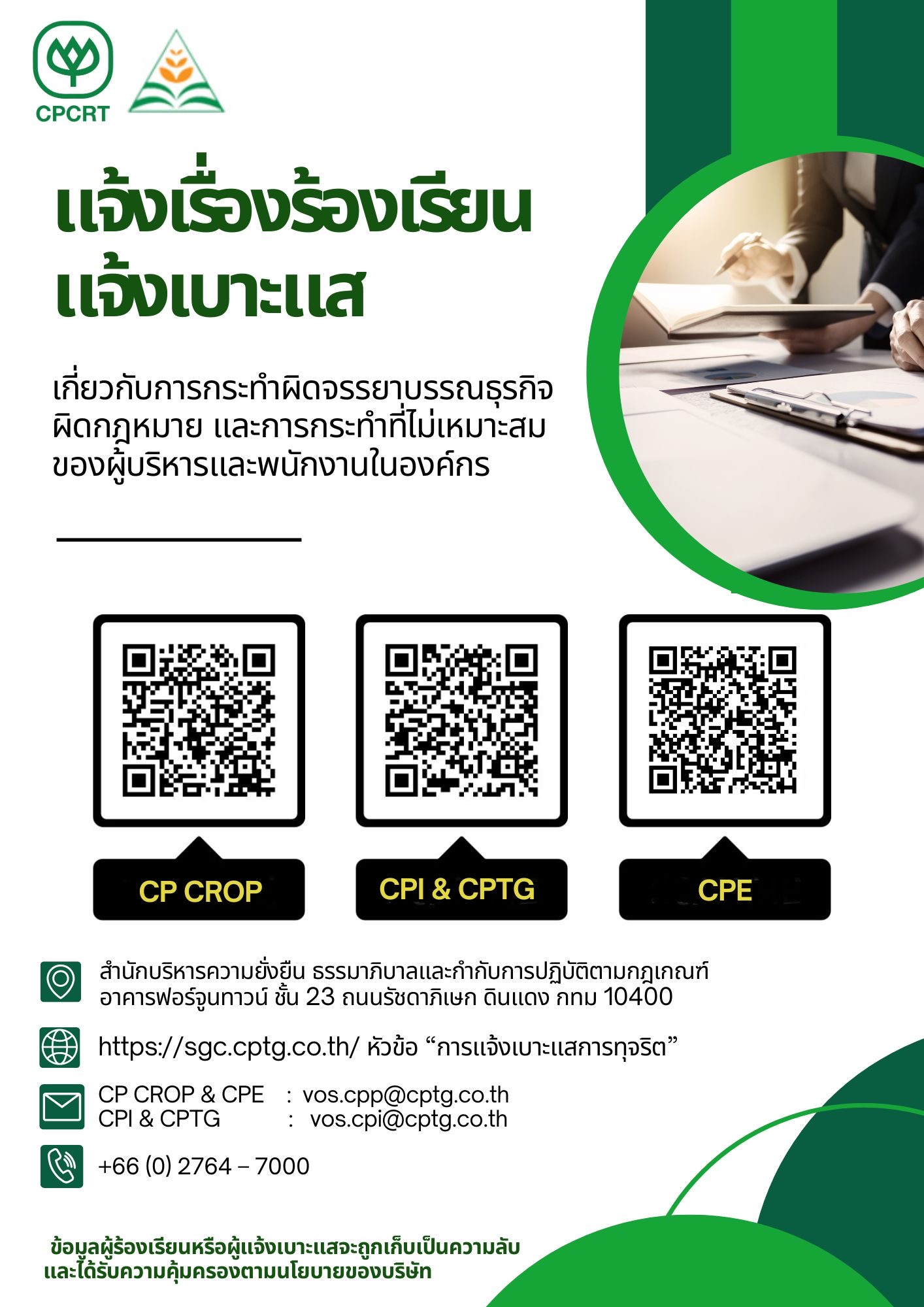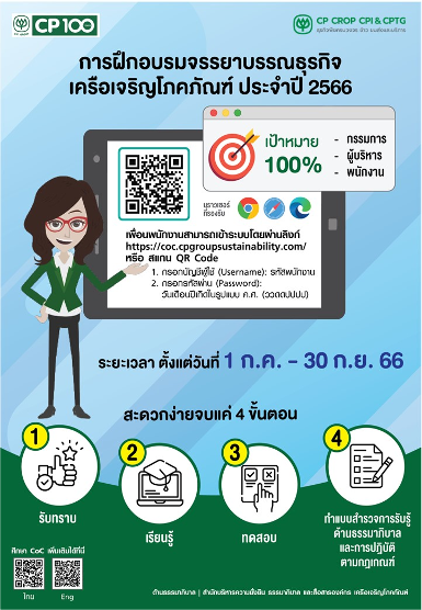เพื่อให้การดำเนินงานของธุรกิจข้าว ขนส่งและบริการ ไปเป็นตามหลักการกำกับดูแลกิจการ และมาตรฐานจริยธรรมอย่างยั่งยืน ธุรกิจจึงสร้างวัฒนธรรมองค์กรด้านจริยธรรมและการกำกับการปฏิบัติตามกฎกณฑ์ โดยได้จัดกิจกรรมในรูปแบบที่หลากหลายเพื่อให้เข้าถึงและสร้างการมีส่วนร่วมกับบุคลากรทั่วทั้งธุรกิจ