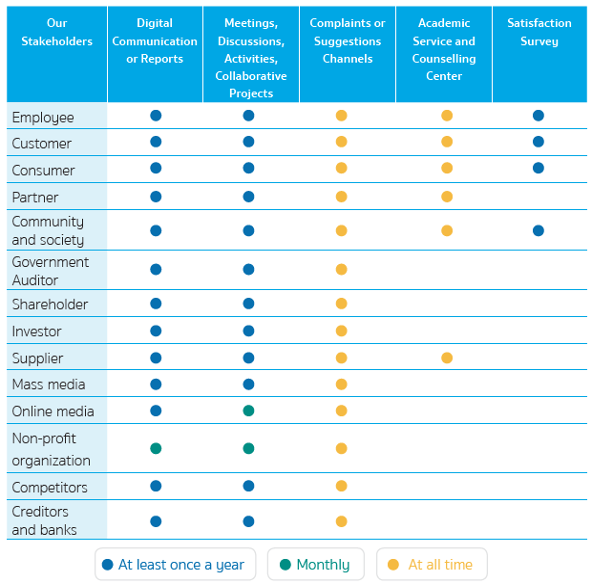 The process of preparing the Sustainability Report for the year 2023 of CP Intertrade Co., Ltd. and companies in the Rice business Transportation and Service, we create stakeholder engagement at the business level by reviewing the issue of hearing from stakeholders from the year 2022 through various mechanisms to examine the issues of sustainable development of the organization and listen to the opinions, suggestions and expectations of different groups so that we understand the common issues that stakeholders share the same opinion. and has been planned to respond to such issues as well as pushing for continuous improvement of operations and to meet the expectations of interested stakeholders and different expectations, the business group therefore creates a channel for stakeholder participation. Through a communication mechanism that facilitates the relationship exchange views the communication frequency of each group will vary according to plans and needs as shown in the following table: